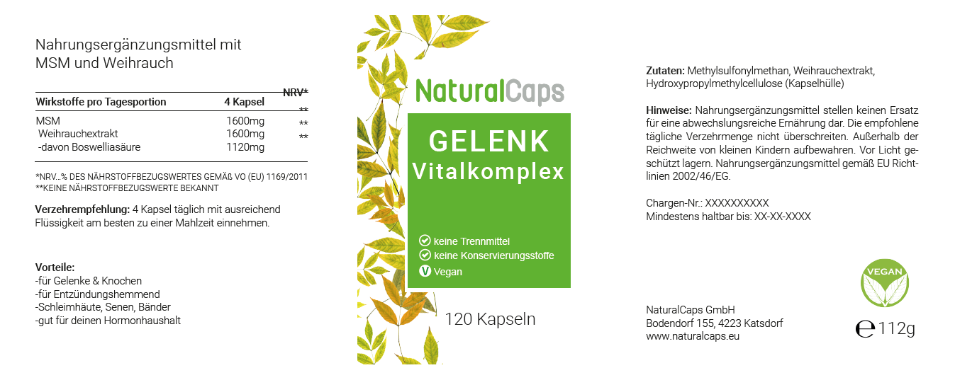 Methylsulfonylmethan, Weihrauchextrakt, Hydroxypropylmethylcellulose (Kapselhülle)
