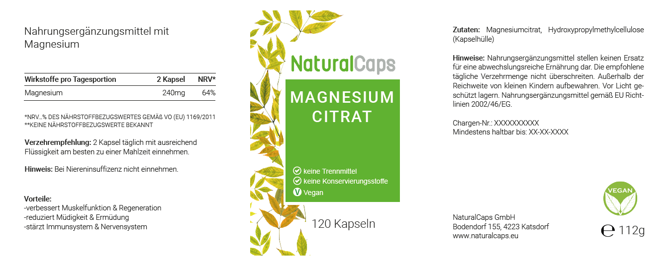Magnesiumcitrat, Hydroxypropylmethylcellulose (Kapselhülle)
