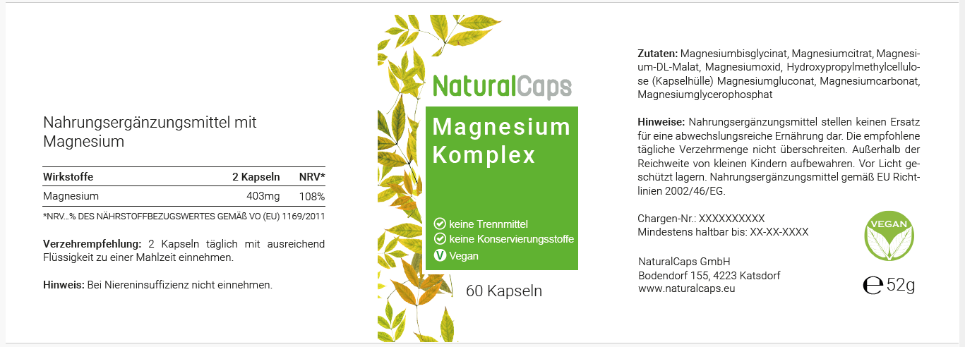 Magnesiumbisglycinat, Magnesiumcitrat, Magnesiumchlorid, Magnesiumoxid, Hydroxypropylmethylcellulose (Kapselhülle) Magnesiumgluconat, Magnesiumcarbonat, Magnesiumglycerophosphat