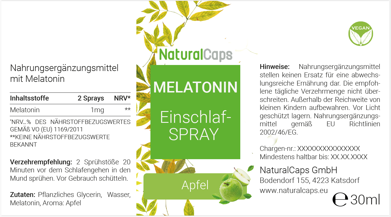 Pflanzliches Glycerin, Wasser, Melatonin, Aroma: Apfel